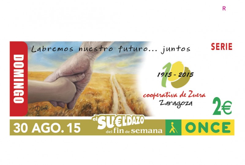 The president of CEPES, Juanhn Antonio Pedreño attended the presentation of the coupon that was shown to the different media by Ignacio Escanero, Territorial Delegate of ONCE, and Mr Gustavo Casanova, President of the Agricultural Cooperative San Licer.They were accompanied by the Minister of Rural Development and Sustainability of the Government of Aragon, the Mayor of the town, the President of CEPES Aragon, the President and Director General of Agrifood Cooperatives of Aragon, as well as other representatives of ONCE, the Cooperative San Licer, the Municipal Corporation and other Cooperatives Aragonesas.
