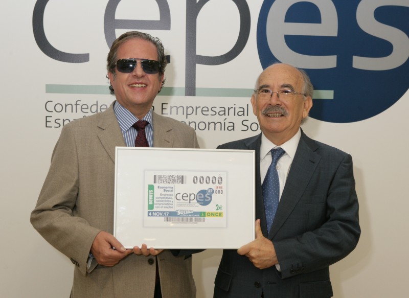 Este cupón ha sido presentado por Rafael de Lorenzo, secretario general de la ONCE y Pedro Muñoz, Vicepresidente de CEPES, acompañados por el equipo de CEPES. Con este cupón, la ONCE apoya, una vez más a la economía social española.