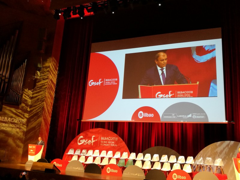 Pedreño hizo estas declaraciones durante la Sesión de Apertura del ‘Global Social Economy Forum’ (GSEF) que se celebra en Bilbao y que reúne estos días a más de 1700 personas de 80 países. En el acto de inauguración participó junto a la ministra de Trabajo, Migraciones y Seguridad Social, Magdalena Valerio; el lehendakari del Gobierno Vasco, Íñigo Urkullu; el alcalde de Bilbao, Juan Mari Aburto; y la presidenta de la Red Vasca de Economía Social, Rosa Lavin, entre otros.