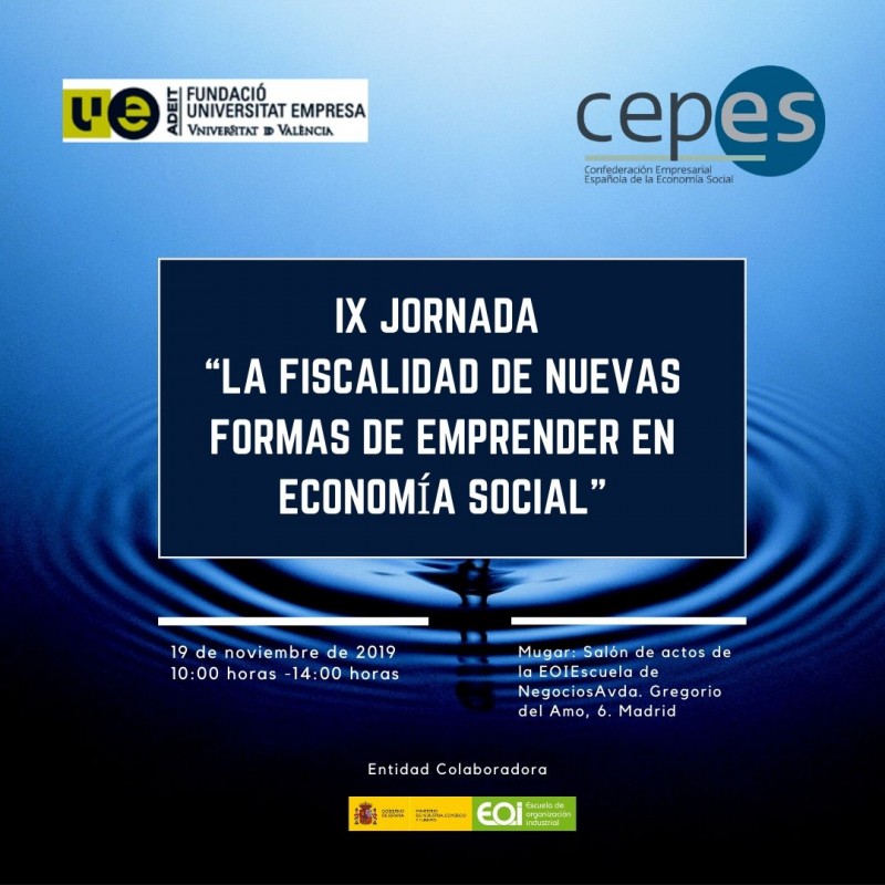 Madrid, 24 de octubre de 2019.- La Confederación Empresarial Española de la Economía Social (CEPES) organizará en colaboración con la Universidad de Valencia el próximo 19 de noviembre la Jornada ‘La Fiscalidad de nuevas formas de emprender en Economía Social’, que se celebrará en la EOI Escuela de Negocios (Av. Gregorio del Amo, 6), entidad que ha cedido gratuitamente sus instalaciones y con la que CEPES tiene un Convenio de Colaboración.
