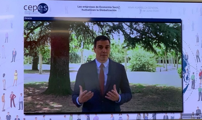•   El presidente del Gobierno realizó estas declaraciones con motivo de la XXVIII Asamblea General de CEPES, celebrada hoy de manera telemática, y anunció que la Economía Social será “un agente fundamental en la reconstrucción en definitiva en la recuperación económica y social en la transformación que tiene nuestro país por delante”.