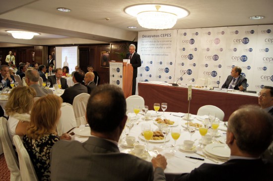 (Madrid, 15 de septiembre de 2011).- El presidente de la Región de Murcia, Ramón Luis Valcárcel, ha ofrecido este jueves en Madrid una conferencia en el marco del primer Desayuno CEPES (Confederación Empresarial Española de la Economía Social), en la que ha abordado la importancia y la solidez de este modelo empresarial como un "instrumento esencial" para generar empleo y salir de la crisis.