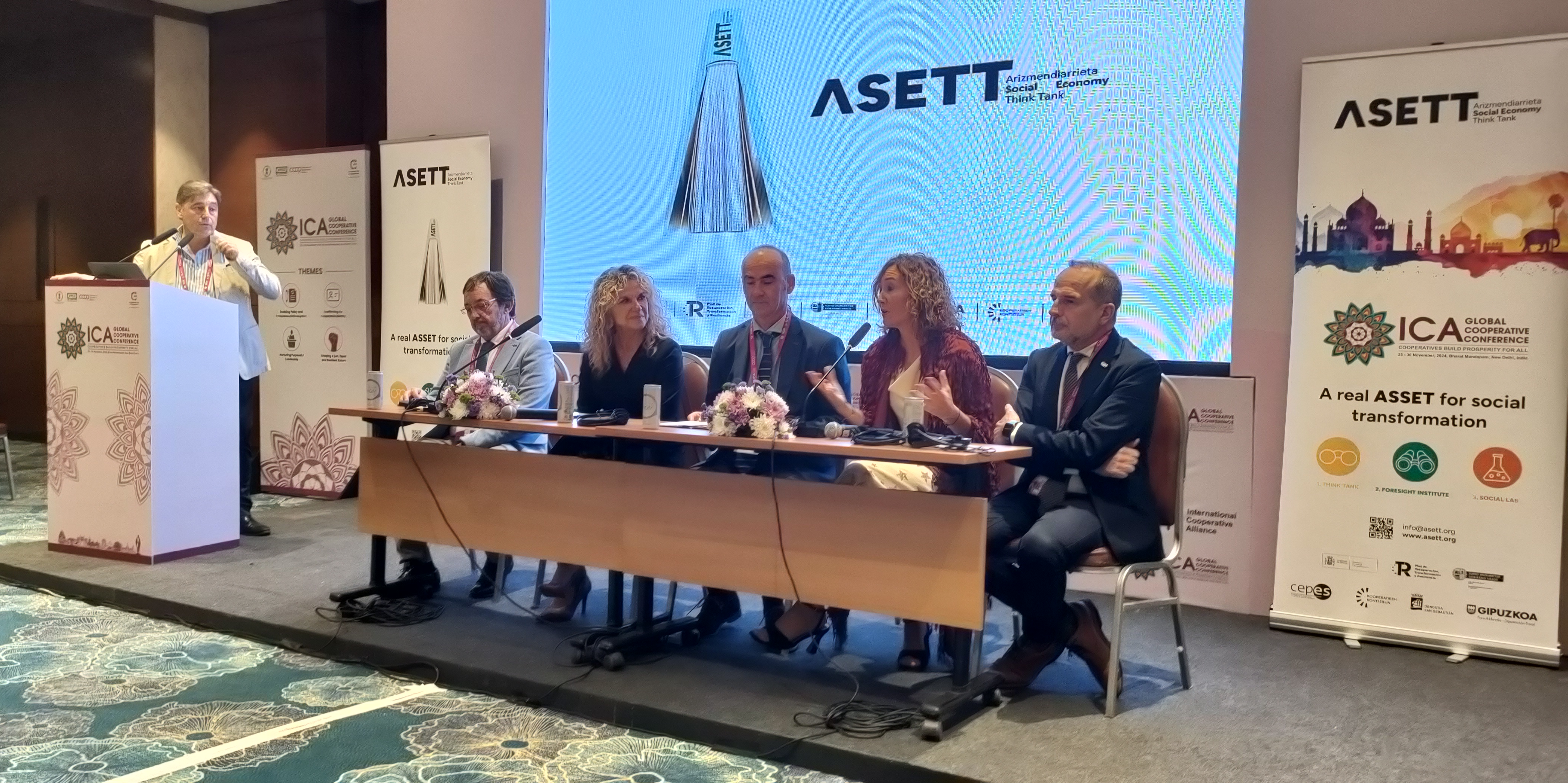 En el marco de la Asamblea General de la Alianza Cooperativa Internacional celebradadel 25 al 29 de noviembre en Nueva Delhi, India, se presentó ASETT, el HUBde Vanguardia de la Economía Social.CEPES lideró esta primera puesta de largo de la mano de los vicepresidentes Leire Mugerza y Luis Miguel Jurado, junto con el Gobierno de España,representado por la secretaria deEstado de Economía Social, Amparo Merino y del Gobierno del PaísVasco, representado por el Director General de Economía Social, Jokin Díaz, además, de representantes del Consejo Superior de Cooperativasde Euskadi y del Grupo Mondragón.